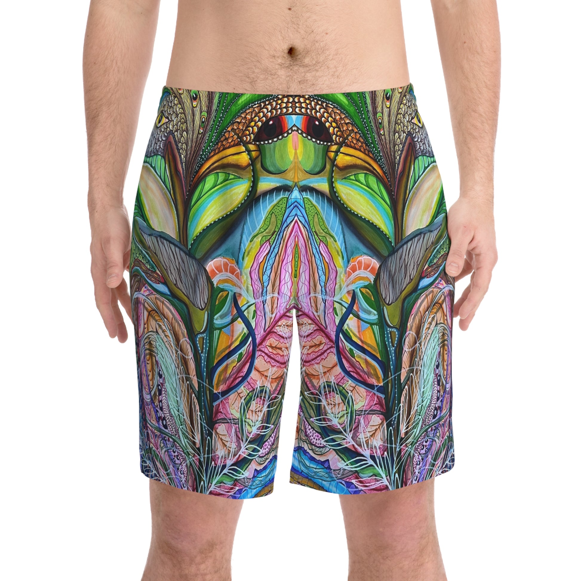 "Agua Fresca" Men's Elastic Beach Shorts (AOP)