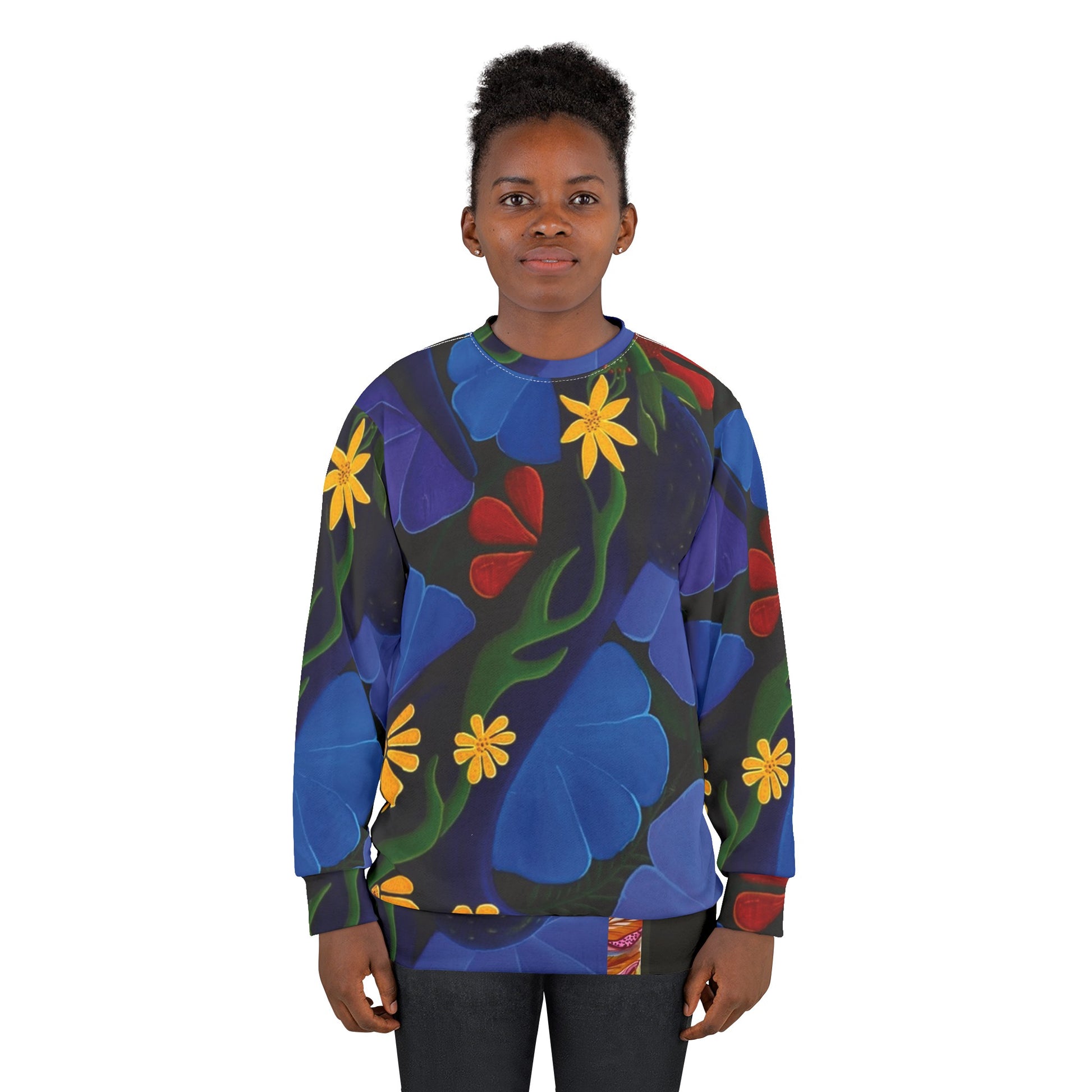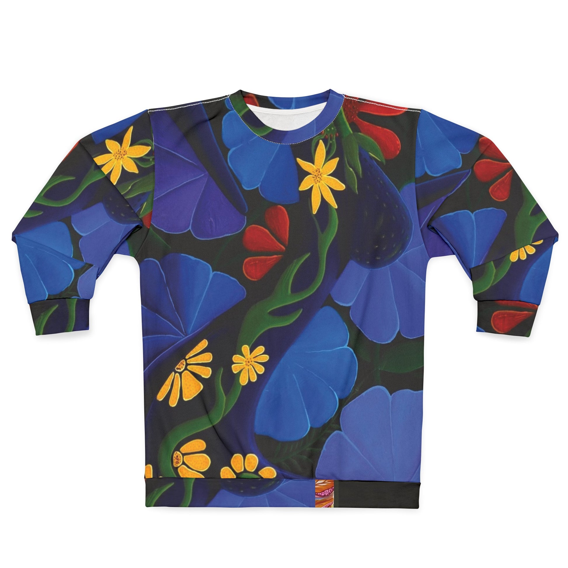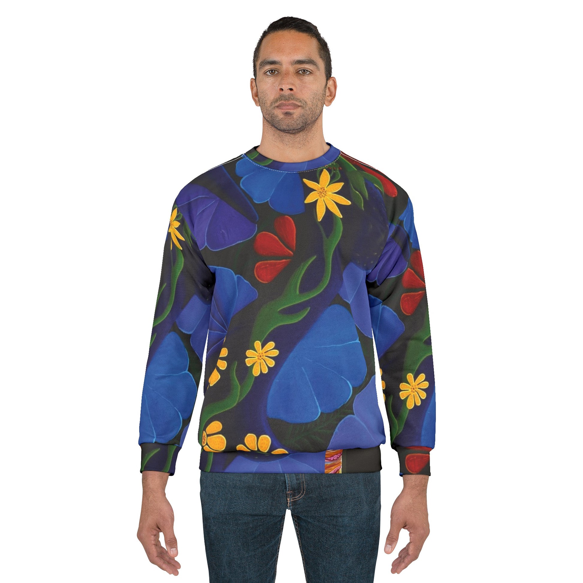 This all over print crewneck sweatshirt is the perfect example of cool. With quality all-over printing capabilities, you won’t be worried about white lines at the seams. This fleece is custom cut and sewn, featuring a crew neck and set-in sleeves to keep you warm.